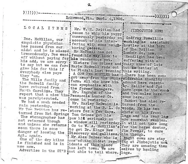 Mr. Ingrahm of the Pensacola Lumber Co. came in yesterday.
