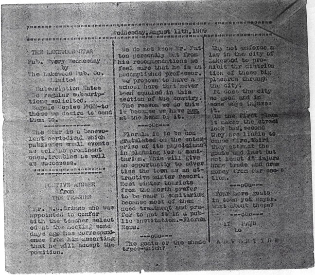 Lakewood, Fla., August 4th- This evening about 4.00 a negro named Chas Jones was knocked almost senseless by a north bound log train between Natural Bridge and this place.
