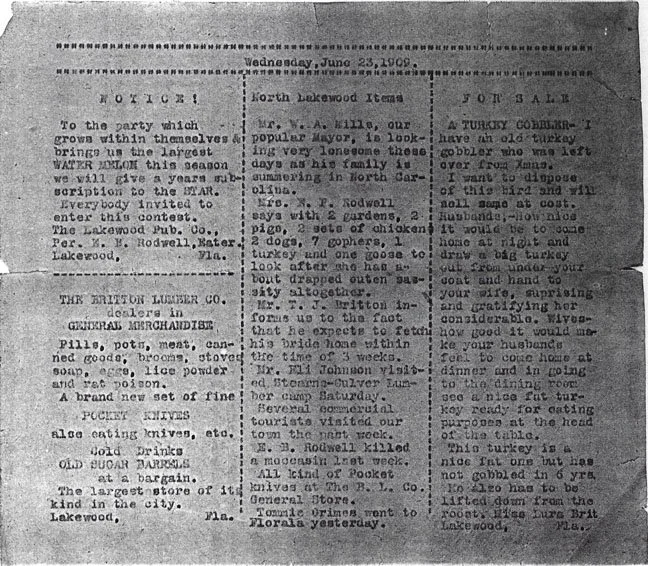 Marriage license are now selling at a bargain. Get married at once and let me tie the knot. Office in B.L.Co. Bldg. Lakewood, Fla.