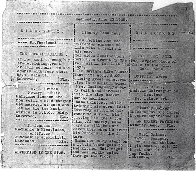 If you want to swap, buy, trade, exchange, rent or sell gophers we can comply with your wants. No. 86 Main St., Lakewood, Fla.