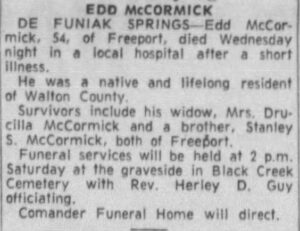 Survivors include his widow, Mrs. Drucilla McCormick and a brother, Stanley S. McCormick, both of Freeport.