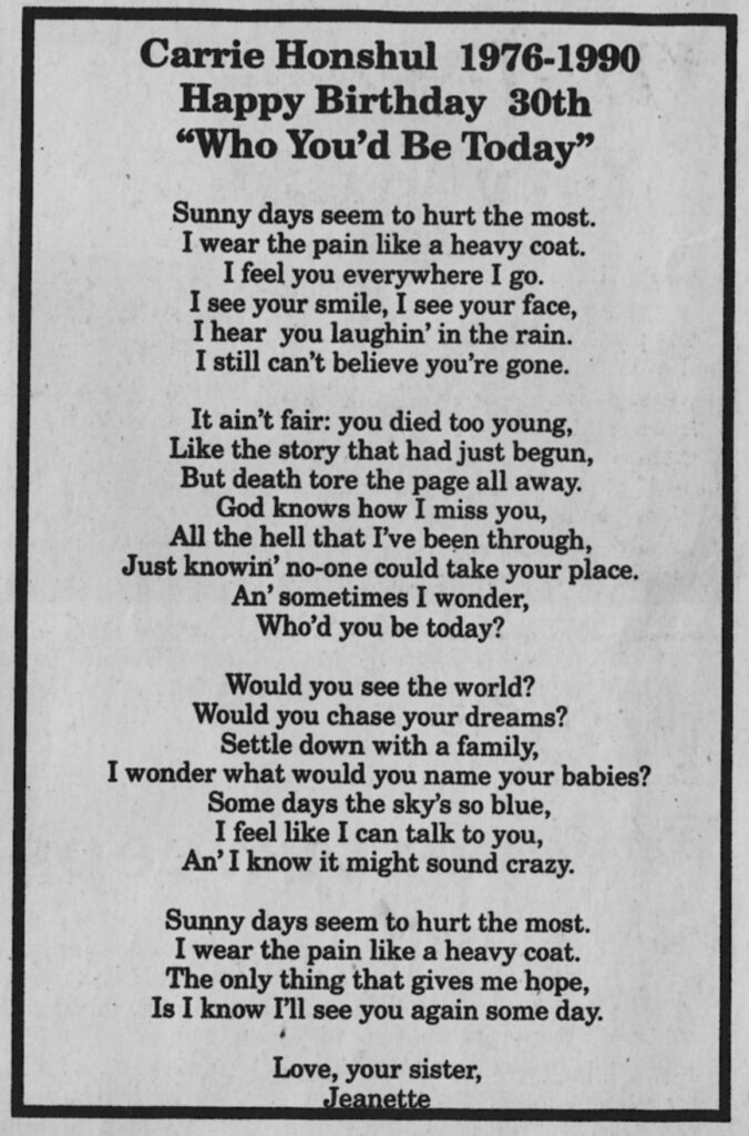 Kari Lynn Honshul November 21, 2020 admin [Source: The DeFuniak Springs Herald, May 25, 2006, Page 11-B] [Burial: Magnolia Cemetery, DeFuniak Springs]